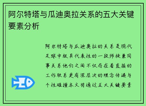 阿尔特塔与瓜迪奥拉关系的五大关键要素分析